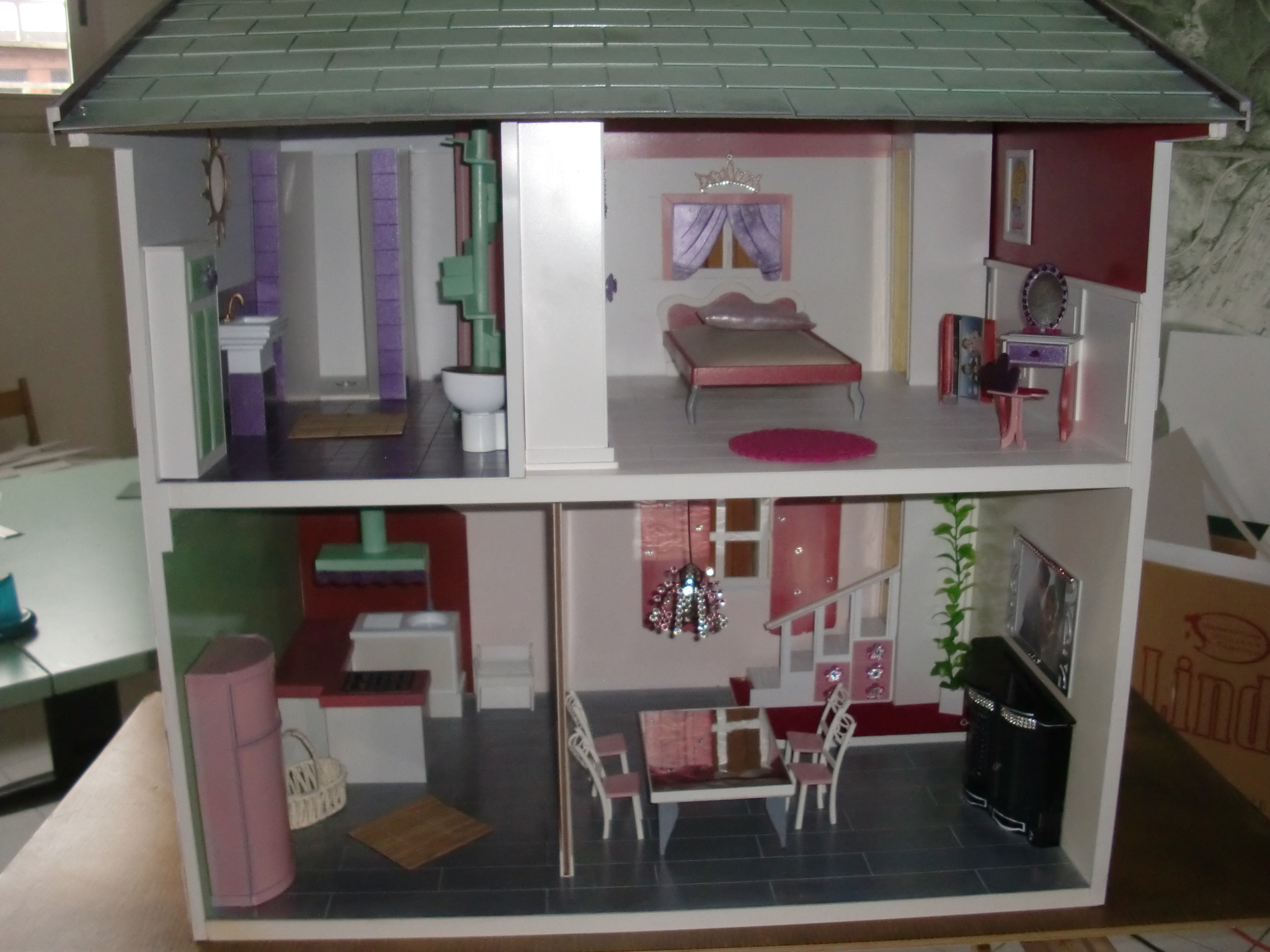 Barbie house in scala 1:10. Una accogliente casa per la "doll per eccellenza", rigorosamente arredata con materiale plastico laccato e fornita di illuminazione